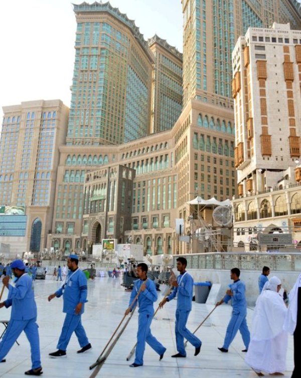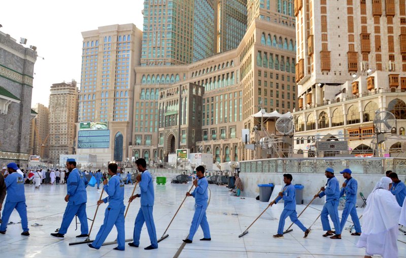 MECCA, APR 30 (UNI)- Workers cleaning the area at the premises of holy Kaaba in Mecca Al Mukarrmmah on Tuesday