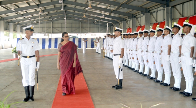 The Union Minister for Defence, Nirmala Sitharaman inspecting Naval Guard of Honour on her visit to Karwar Naval Base, in Karnataka on December 28, 2017.
