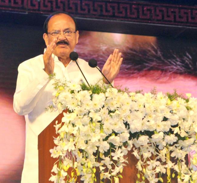 The Vice President,MVenkaiah Naidu addressing the gathering after presenting the Akkineni Nageswara Rao National Film Award, in Hyderabad on September 17.2017.
