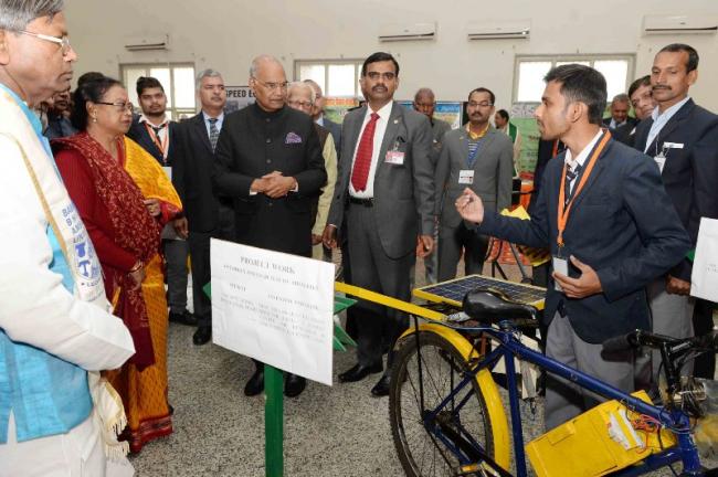 The President, Ram Nath Kovind visiting the Rural Grass Root Innovators Exhibition, at the 7th Convocation of Babasaheb Ambedkar University, at Lucknow, in Uttar Pradesh on December 15, 2017.