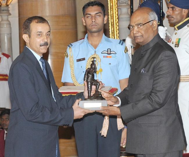The PresidentRam Nath Kovind presenting the Tenzing Norgay National Adventure Award, 2017 to Shri Ashok Abbey - LifeTime Achievement, in a glittering ceremony, at Rashtrapati Bhavan, in New Delhi on August 29, 2017.