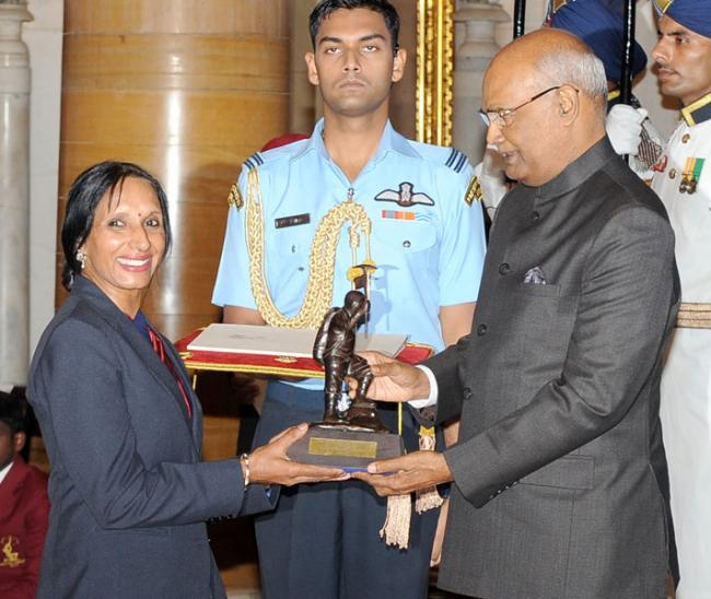 The President,Ram Nath Kovind presenting the Tenzing Norgay National Adventure Award, 2017 toPremlata Agrawal for Land Adventure, in a glittering ceremony, at Rashtrapati Bhavan, in New Delhi on August 29, 2017.