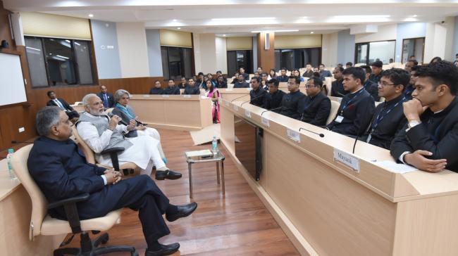 The Prime Minister, Narendra Modi interacting with the Officer Trainees of the 92nd Foundation Course, at the Lal Bahadur Shastri National Academy of Administration (LBSNAA), in Mussoorie, Uttarakhand on October 26, 2017.