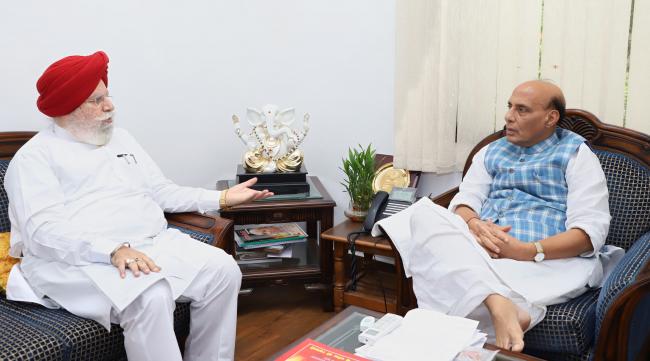 The Minister of State for Drinking Water and Sanitation, S.S. Ahluwalia calling on the Union Home Minister, Rajnath Singh, in New Delhi on October 26, 2017.