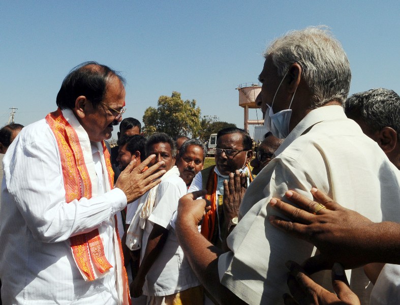 The Vice President, M. Venkaiah Naidu interacting with the public at Sammakka Saralamma festival, in Medaram village, Telangana on February 02, 2018.