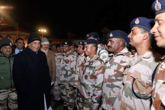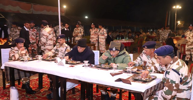 The Union Home Minister, Rajnath Singh joined ITBP personnel for the ‘Bara Khana’, during his visit to the 12th Battalion of Indo-Tibetan Border Police (ITBP), on the occasion of the New Year celebrations, at Matli, Uttarkashi, in Uttarakhand on December 31, 2017. The Director General, ITBP, R.K. Pachnanda is also seen.