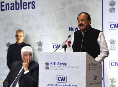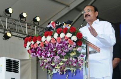 The Vice President, M. Venkaiah Naidu addressing the gathering at the second anniversary of Swarna Bharat Trust and to inaugurate Mega Health Camp, on the occasion of the World Cancer Day, in Atkur, Andhra Pradesh on February 04, 2018.
