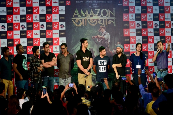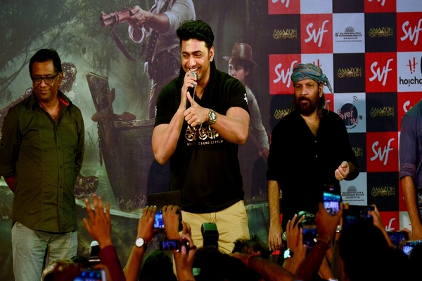 Amazon Obhijaan's lead actor Dev, along with Mukherjee and music composer Debojyoti Mishra, have launched the film's poster. Its size is 60,800 sq.ft. (5640 sq. meters).
