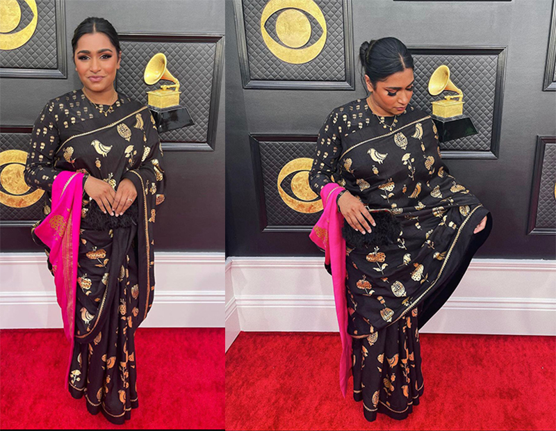 American singer Maryanne J. George walks Grammy red carpet in a House of Masaba Saree