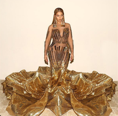 Beyonce looks stunning in golden gown designed by Indian Designers Falguni Shane Peacock