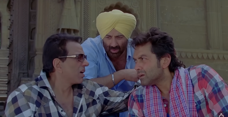 Dharmendra with his actor sons, Sunny Deol and Bobby Deol, in Yamla Pagla Deewana.