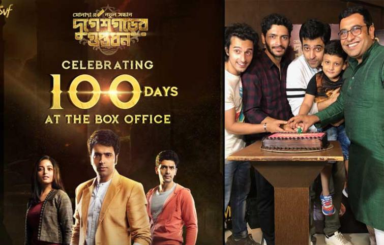 Kolkata: Adding another feather to its cap, Bengali film Durgeshgorer Guptodhon completed 100 days at the box office on Saturday.