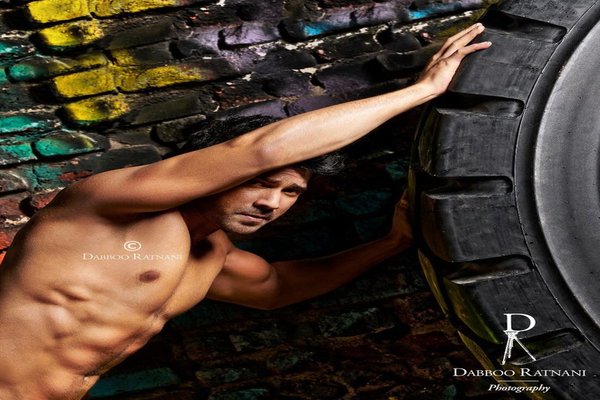 This Bollywood youth sensation can easily take on any actor in the fray just on the basis of his hotness. Varun bares it all for Dabboo's photo shoot. The young actor flaunted his full muscular body in the picture where he was seen pushing a tire while giving a look that could make any girl fall for him. The background of the picture with full of colourful bricks adds to the vividness of the picture.