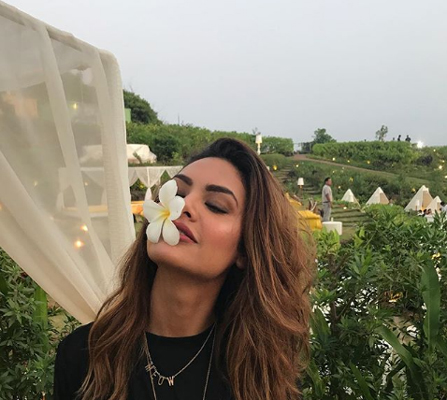 In this image, Esha could be seen posing infront of the camera with a flower on her mouth.
