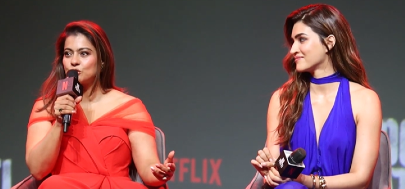Kajol (L) and Kriti Sanon (R) at Do Patti trailer launch event | Photo courtesy: Screenshot grab from YouTube video