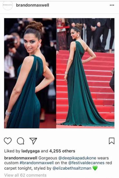 The pop star, who is a fashion inspiration to many herself, liked a picture of Deepika Padukone that designer Brandon Maxwell posted on Instagram.