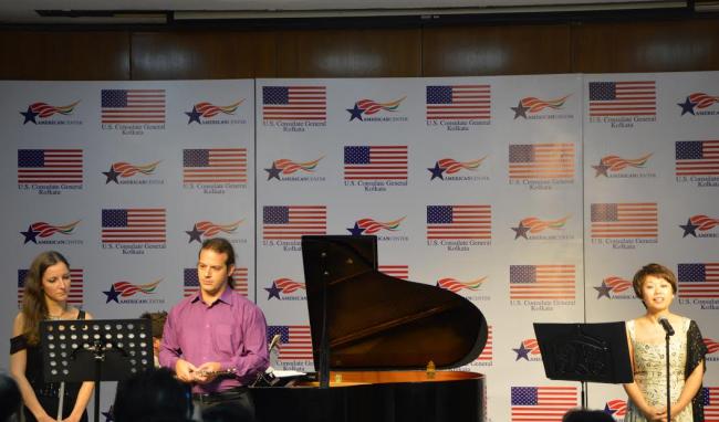 American soprano Meeryung Hall (wife of US Consul General Craig L Hall) collaborated with European pianist Panos Karan and flutists Ana Chifu and Zach Tarpagos to introduce Kolkata’s western music lovers to the tradition of setting American poetry to music.