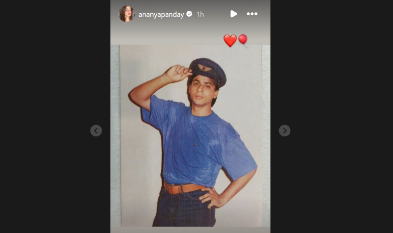 Actress Ananya Panday shared a picture from Shah Rukh's younger days on Instagram with a heart emoticon.