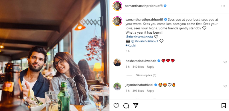 Samantha's post comes with a caption which reads, "Sees you at your best, sees you at your worst. Sees you come last, sees you come first. Sees your lows, sees your highs. Some friends gently standby. What a year it has been!!"