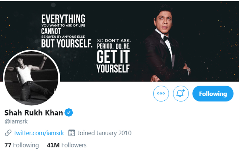 Shah Rukh Khan's Twitter account now followed by 41 million people