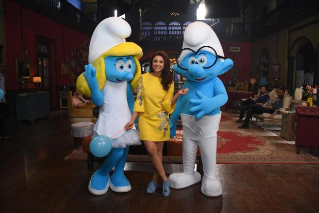 The cast and crew of Golmaal Again, i.e Ajay Devgn, Director Rohit Shetty, Parineeti Chopra, Arshad Warsi, Kunal Khemmu and Tusshar Kapoor were pleasantly surprised and extremely excited to meet the most loved characters- Brainy Smurf and Smurfette. It was a sight to see everyone laugh and enjoy with the characters.