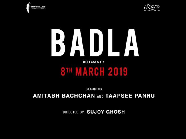 Film critic Taran Adarsh tweeted, "Amitabh Bachchan and Taapsee Pannu... #Badla to release on 8 March 2019... Directed by Sujoy Ghosh... Produced by Red Chillies Entertainment and Azure Entertainment... Official announcement:"