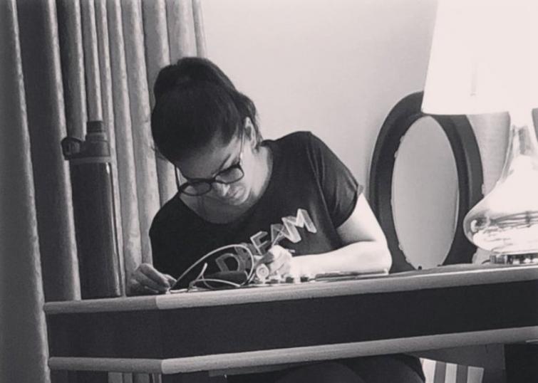 "Working on my painting....will take me a long time to finish it :) but will be great when it’s done. Black and white acrylic paint on canvas #abstract I like working on projects that take me a long time to finish. Not sure why but it is what it is," Sunny tweeted.