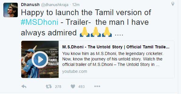 Dhanush took to twitter to launch the trailer to the most anticipated film in Tamil.