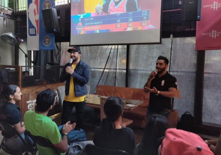 Anchor Mohit Jadhwani shares stage with Rannvijay Singha while hosting NBA Basketball initiative