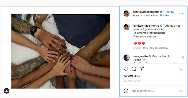 “All that we are is thanks to you,” his daughter Kely Nascimento posted on Instagram. “We love you endlessly. Rest in peace.”