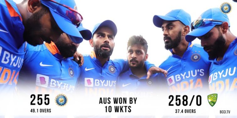 Chasing India's 255 runs, Australia reached 258 runs for the loss of no wicket in 37.4 overs.