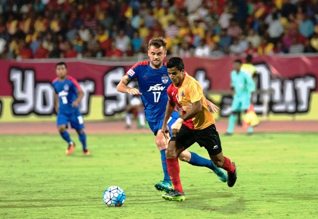 Chennai City FC recouped from soaking pressure and with Soundarajan’s team committing in midfield, Kingfisher East Bengal were kept at bay. Entwined in a battle of possession, with neither emerging victor it took a mistake Chennai City FC to open the goal gates.