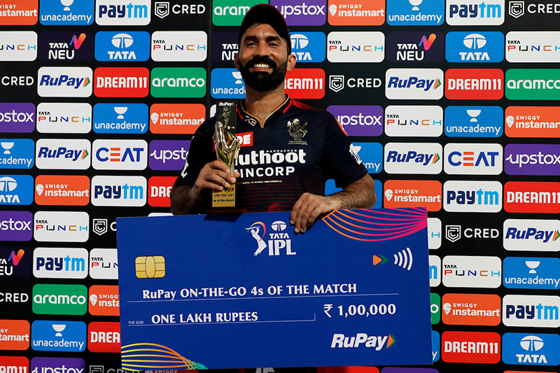 Karthik along with Shahbaz Ahmed (who scored 45 off 26 balls) powered Bangalore to chase down the target.