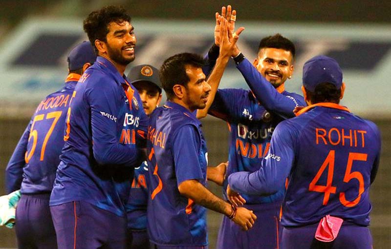 Harshal Patel picked up three wickets while Deepak Chahar, Venkatesh Iyer and Shardul Thakur salped two wickets each for India.