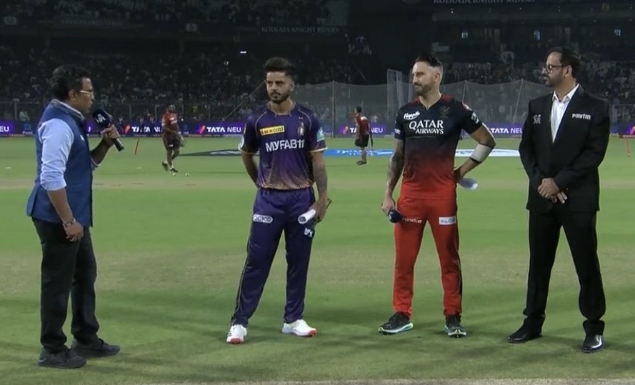 Kolkata/IBNS: Royal Challengers Bangalore (RCB) captain Faf du Plessis won the toss and elected to bowl first against Kolkata Knight Riders (KKR) at the Eden Gardens here on Thursday.