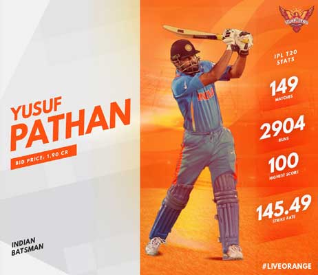 Sunrisers Hyderabad bought Pathan for Rs 1.90 crore.