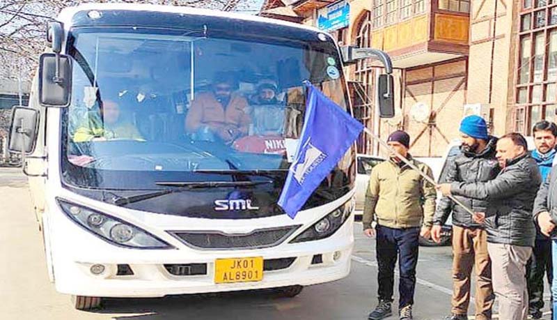 Srinagar: After five Ski batches of boys and girls completed their Introductory Ski Course being Sponsored by the Tourism Department, the 6th and the final batch of boys was flagged from TRC, Srinagar towards Gulmarg on Saturday.