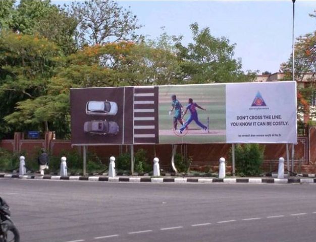 Jaipur traffic police recently put up a hoarding which shows the overstepping of Bumrah in order to make car drivers cautions on road.
