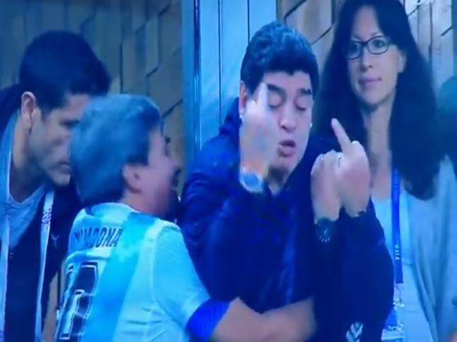 Maradona makes obscene gesture to celebrate Rojo's goal against Nigeria