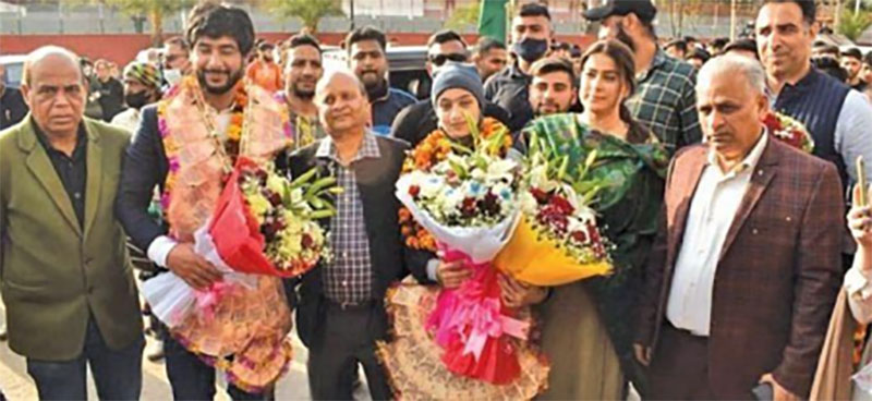 Olympian Arif, Wushu Champion Sadia receive rousing welcome in Jammu