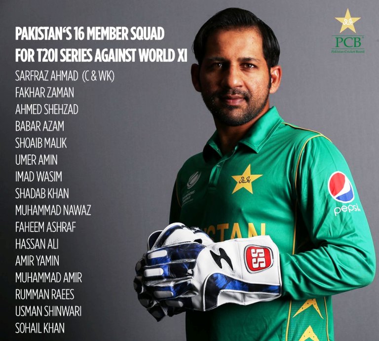 Pakistan names 16-member squad for series against World XI
