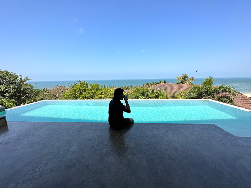 Sitting by the poolside, 'Master Blaster' was seen having some tea.