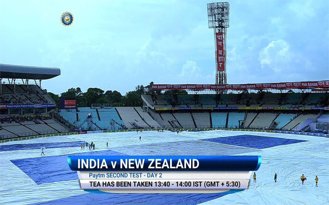 Kolkata, Oct 1 (IBNS): Rain interrupted proceedings on the second day of the second Test match between India and New Zealand at the end of the 24.2 overs here on Saturday.