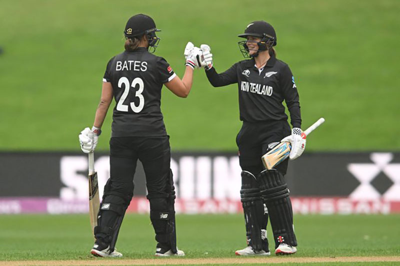 Bates also passed 1,000 World Cup runs in a 108-run partnership with Amelia Kerr as the White Ferns chased down 141 in a rain-reduced match on the South Island.