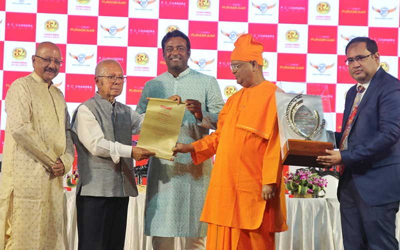 Kolkata/IBNS: Tennis legend Leander Paes was honoured with the prestigious 32nd P.C. Chandra Puraskar for his remarkable contributions at Kolkata's Science City Auditorium last Sunday.