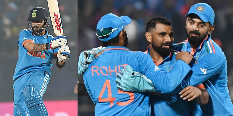 Virat Kohli missed his second consecutive century narrowly but powered India to win over New Zealand after Mohammed Shami's fifer in the 21st match of Cricket World Cup 2023 at Himachal Pradesh Cricket Association Stadium in Dharamshala on Sunday.
