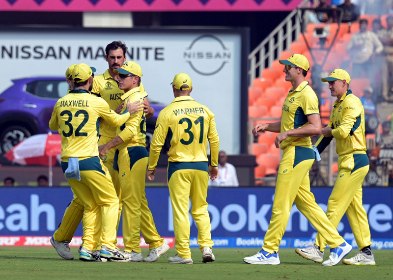 Skipper Pat Cummins dismissed Shreyas Iyer (4) to put India under pressure initially after the five-time champions won the toss and invited the home side to bat first.