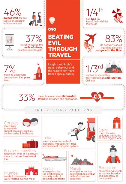 Administered to OYO's select customer-base, the survey received responses from over 800 customers in 180 cities, making this truly representative of emerging India's travel aspirations.