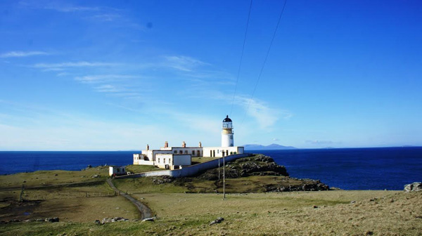 Your first stop should be the unmissable Neist Point. Only here in Scotland can you find a stunning view of a high cliff overlooking the emerald blue sea.