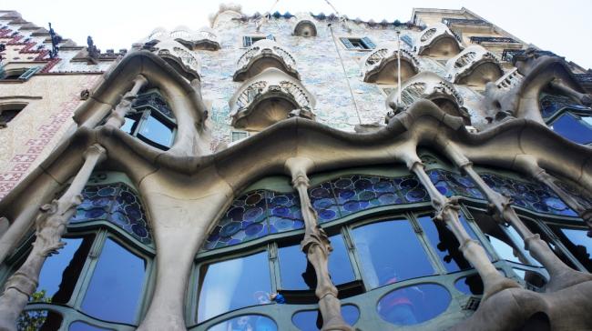 The house in the traditionally upscale Barcelona is also called House of Bones for its visceral, skeletal organic design traits with the façade converted into a symbolic battle between Saint George and the dragon. Standing outside, Casa Batlló resembles a house made of skulls and bones. If the balconies are the "Skulls", then "bones" are the supporting pillars.